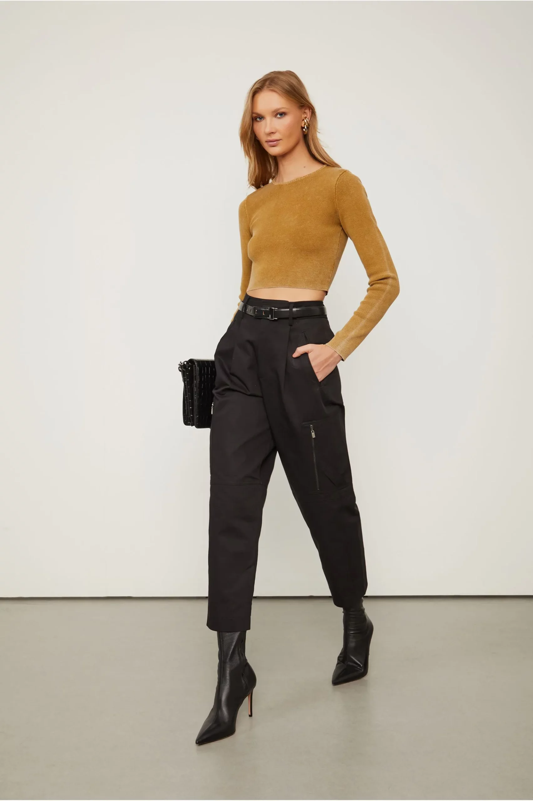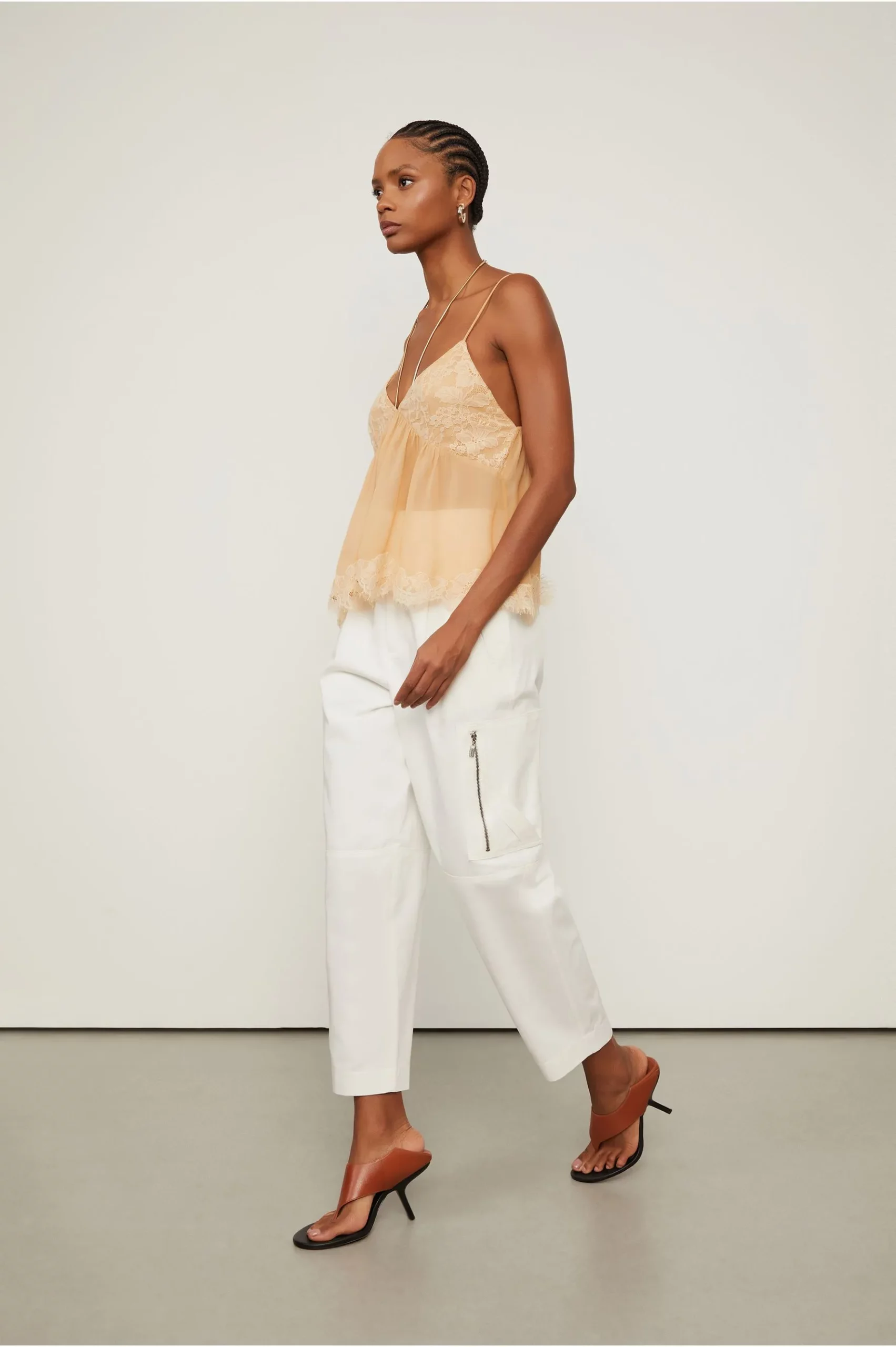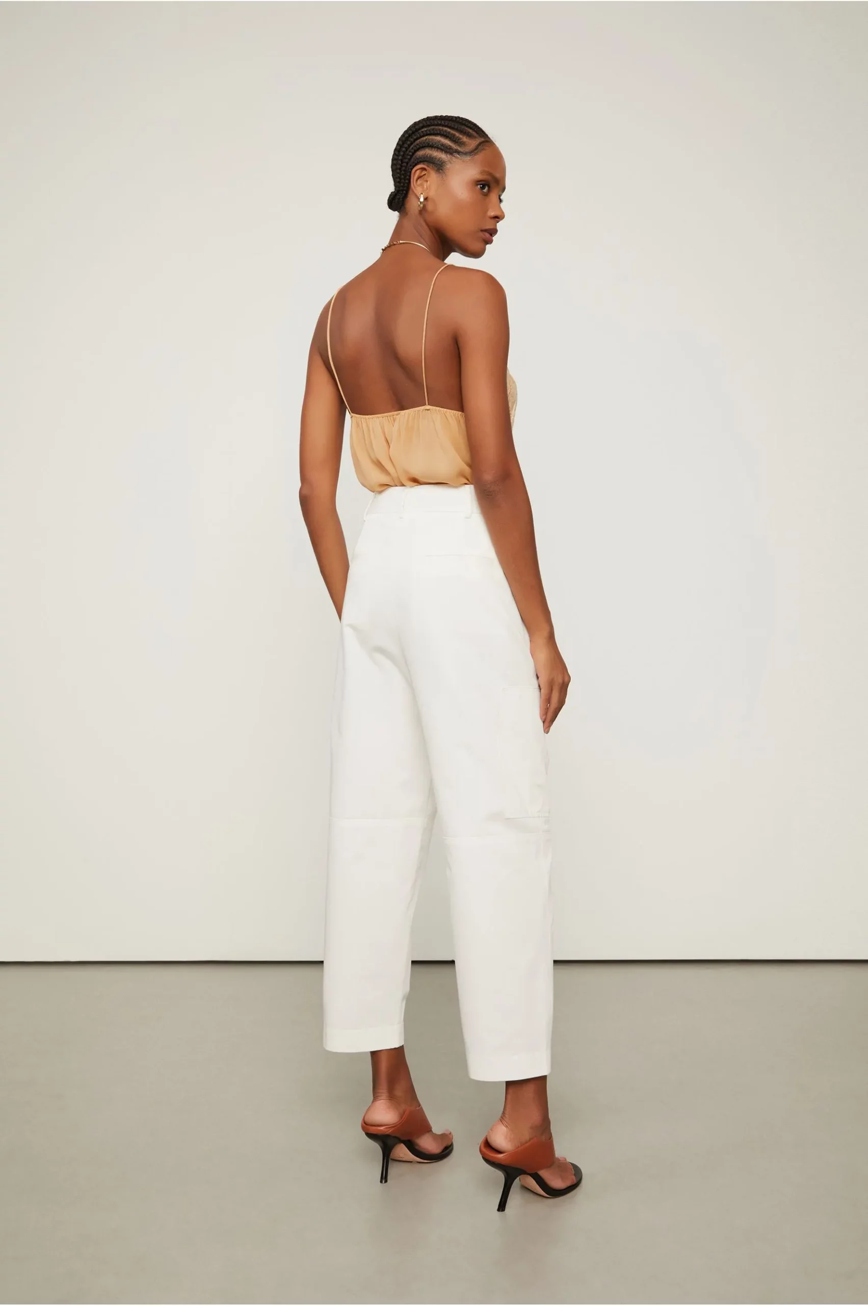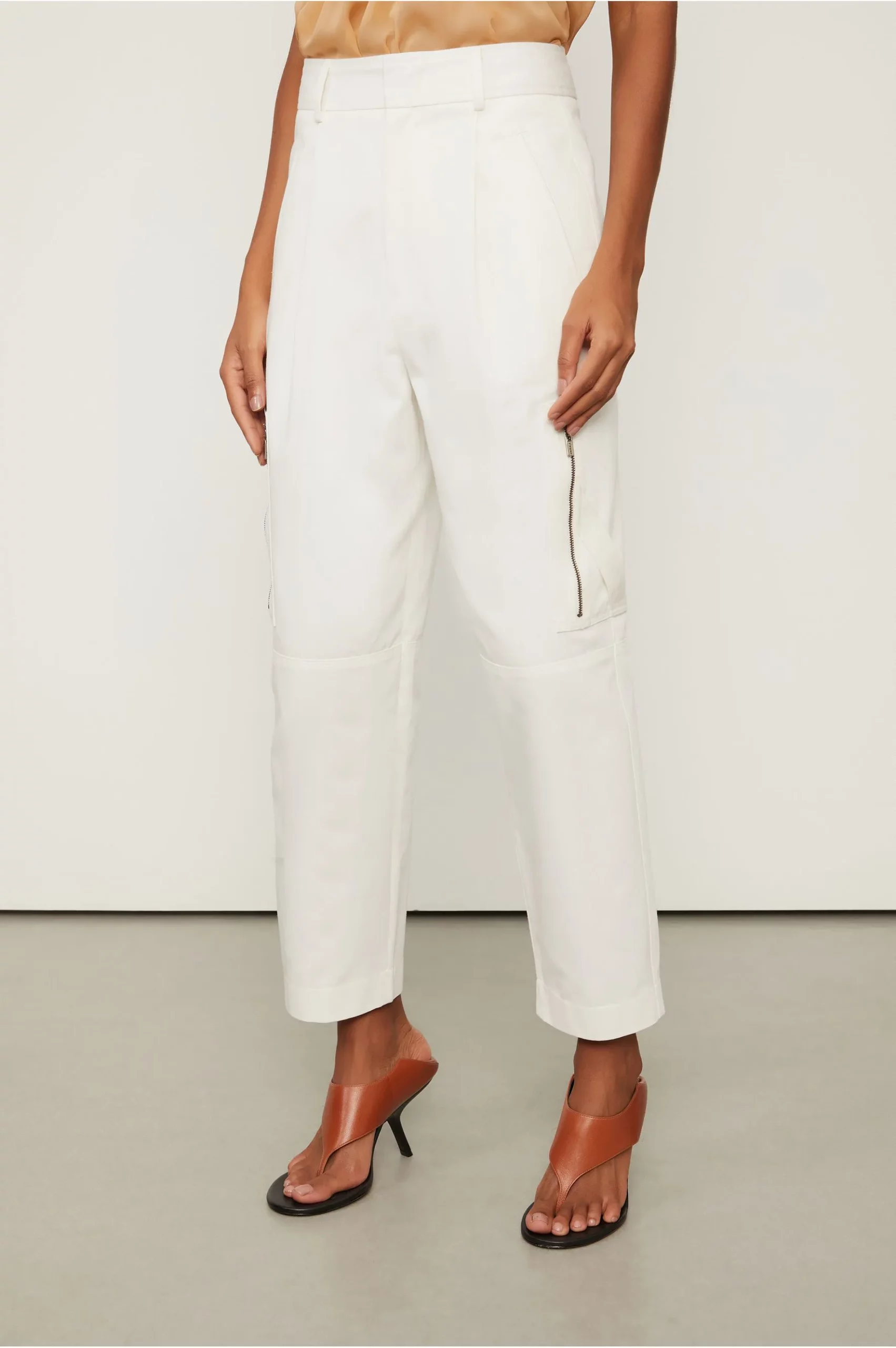 A Calça Cargo Off White possui cintura alta, passantes no cós, bolsos laterais e nas pernas com fechamento por zíper, bolso faca nas costas, recortes nos joelhos, pregas frontais e passadores com fechamento interno na cintura. Uma peça versátil para composições modernas. Complementos delicados e femininos adicionam leveza e sofisticação à produção. Detalhes: – Cintura alta; – Modelagem de carga; -Forro nos bolsos; – Bolsos importantes nas laterais – Bolsos com zíper nas pernas; – Bolso faca nas costas; – Prégas frontais; – Passantes no cós; – Fechamento interno.