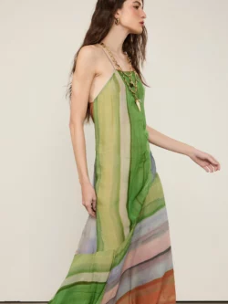 Animale Vestido De Georgette Pesado Midi Estampado Decote Reto