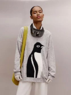 Com visual divertido e aconchegante, a blusa Anselmo traz o mascote da temporada em destaque na trama. Feita em jacquard, a peça tem modelagem ampla, gola alta e textura suave ao toque. Um tricô essencial para aquecer os dias frios com muito estilo e um toque de humor.