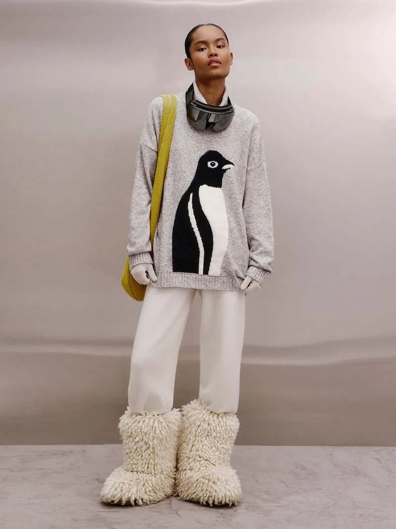 Com visual divertido e aconchegante, a blusa Anselmo traz o mascote da temporada em destaque na trama. Feita em jacquard, a peça tem modelagem ampla, gola alta e textura suave ao toque. Um tricô essencial para aquecer os dias frios com muito estilo e um toque de humor.