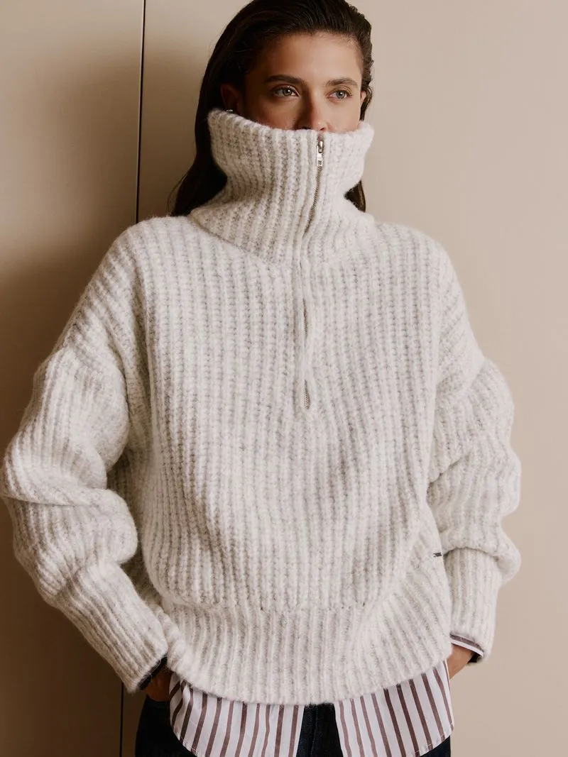 O pullover em ponto pérola combina o charme do artesanal com detalhes contemporâneos. Feito em poliamida, o tricô possui modelagem ampla e gola polo com zíper. É a peça ideal para aquecer seus looks com um toque de sofisticação.