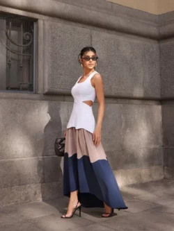 Uma peça que une elegância moderna e originalidade. O Vestido Tricolor Saia Mullet traz uma proposta fashion e sofisticada, ideal para mulheres que amam se destacar com estilo.