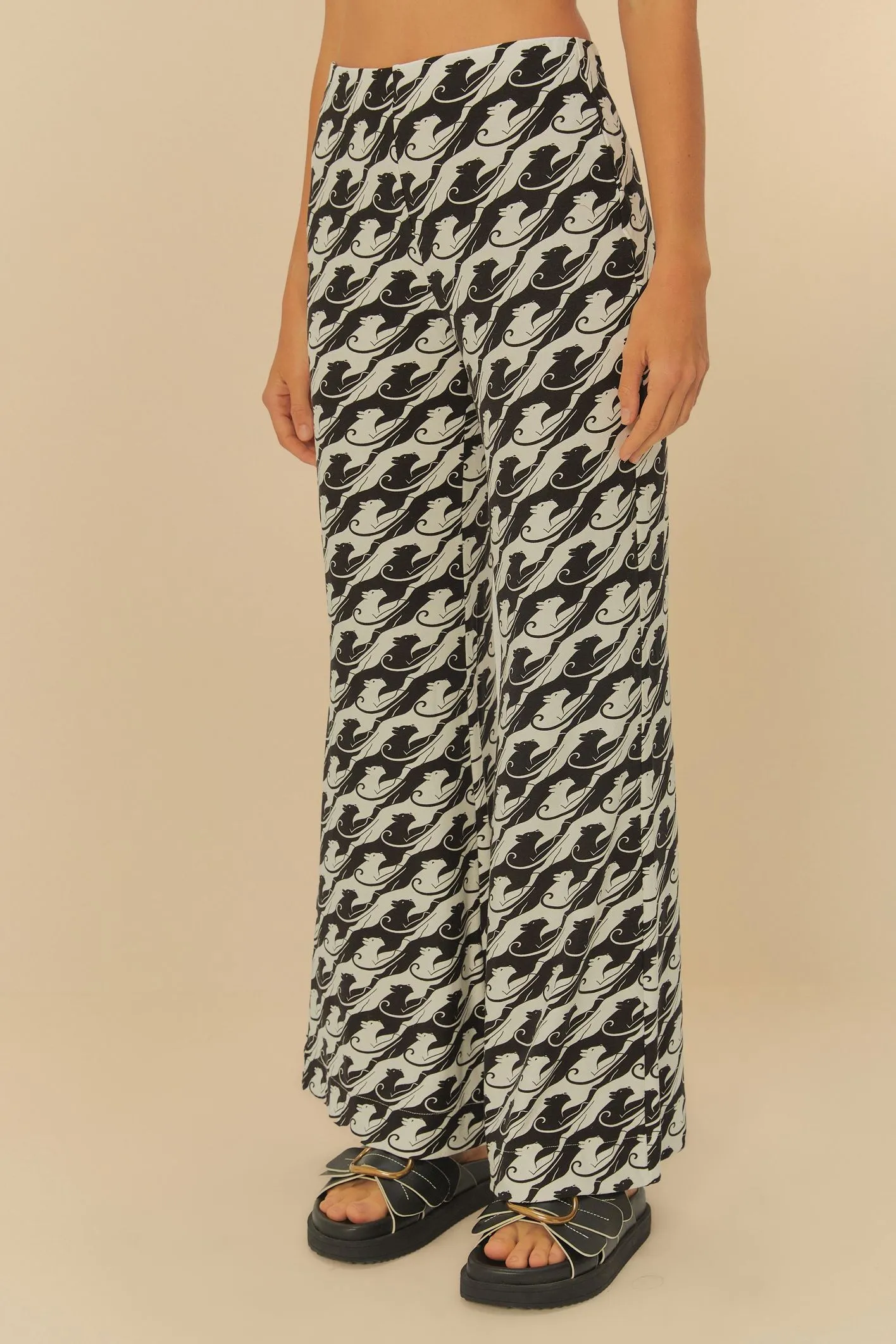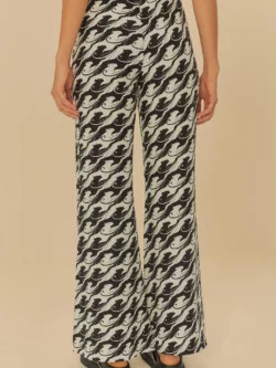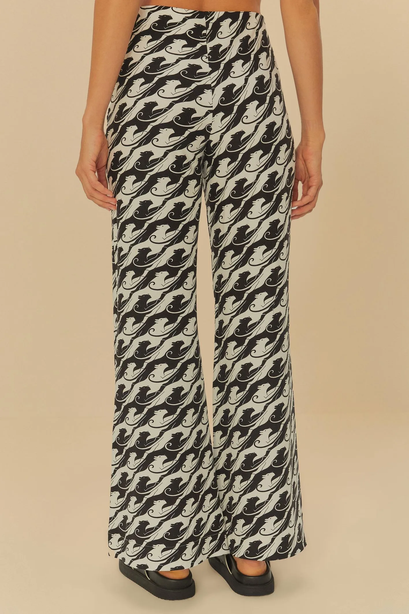 calça flare panteras. a modelagem flare traz um toque retrô que eleva o look, perfeita para criar combinações modernas e casuais. confeccionada em tecido leve, suas cores contrastantes garantem destaque em qualquer ocasião.