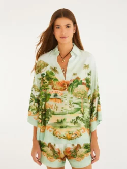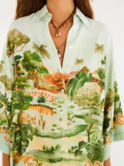 camisa passeio no parque. com gola clássica e abertura em v, essa peça traz mangas amplas e caimento solto, perfeita para um look casual e fluido. os acabamentos detalhados garantem um toque especial e destacam a originalidade da estampa exclusiva, ideal para um passeio ou um encontro descontraído.