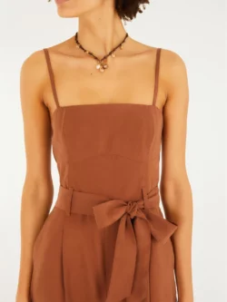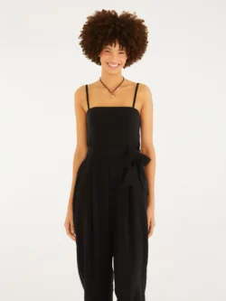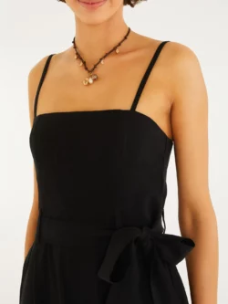 macacão alfaiataria. com alças finas e decote reto, o macacão valoriza a silhueta de forma sutil. a cintura ajustada com cinto de amarração e a calça de corte reto completam a modelagem elegante e prática. perfeito para um dia no escritório ou um jantar casual. FARM Rio, coleção Carioca – in
