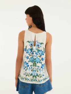 regata estampada laura. com alças largas e decote discreto, esta regata traz o frescor ideal para o seu dia a dia. perfeita para encontros casuais ou um passeio ao ar livre, a peça é leve e proporciona liberdade de movimentos. o corte reto garante versatilidade, combinando bem com diferentes estilos e ocasiões