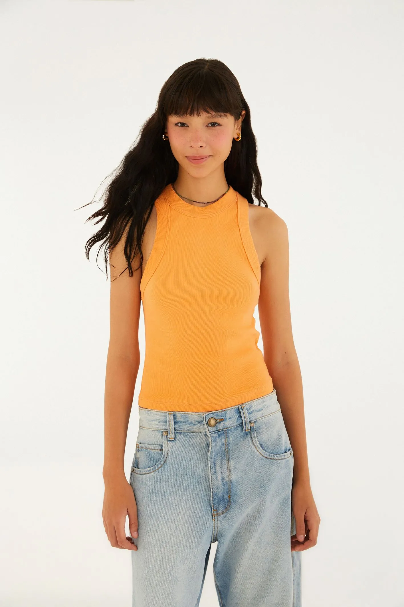 regata letícia é perfeita para os dias ensolarados. com alças delicadas, decote redondo e corte ajustado, oferece conforto e estilo. combina com momentos casuais ou passeios ao ar livre, garantindo frescor e originalidade em qualquer look.