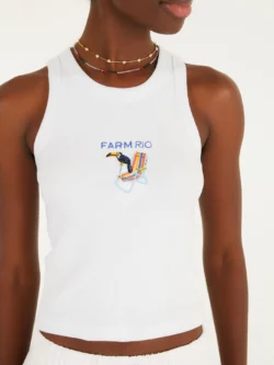 regata rib tucano farm rio. confeccionada em tecido canelado, esta peça sem mangas proporciona conforto e estilo. o detalhe bordado na parte frontal eleva a originalidade, tornando-a perfeita para ocasiões casuais ou festivas ao ar livre. com corte ajustado, é um convite à liberdade e leveza dos dias quentes.