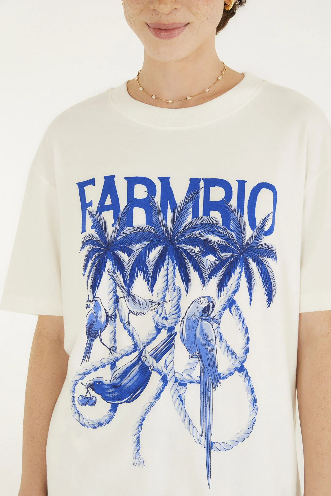 T-shirt Media Cordas E Aves Farm, uma peça que traz toda a originalidade e o frescor da Farm Rio para o seu guarda-roupa. Pensada especialmente para mulheres que buscam estilo com personalidade, essa T-shirt combina a delicadeza das estampas de cordas e aves com o conforto perfeito para os dias quentes.
