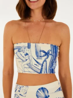 top reto double estampado aventureiro. possui design minimalista sem alças, valorizando o conforto e a praticidade. a dupla camada de tecido realça a originalidade e garante um caimento perfeito. perfeito para combinar com saias ou calças em um look casual de alto verão.