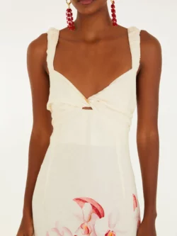 vestido cropped estampado afrodite. com decote em coração e alças finas ajustáveis, o modelo traz uma proposta leve e arejada para os dias ensolarados. o comprimento midi e a barra destacada oferecem movimento, ideal para passeios no parque ou encontros casuais. tecido fluido e design único completam o charme dessa peça indispensável.