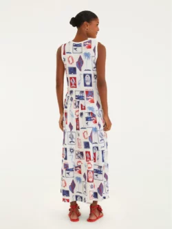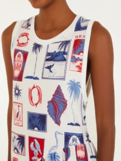 Farm vestido cropped estampado tropical vintage. com decote redondo e alças largas, a peça tem corte evasê que proporciona leveza e movimento. ideal para momentos casuais ou encontros especiais, destacando-se pela originalidade e conforto.