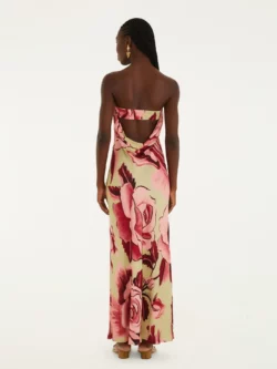 Farm Vestido Longo Sem Alça Estampado Rosas Pintadas