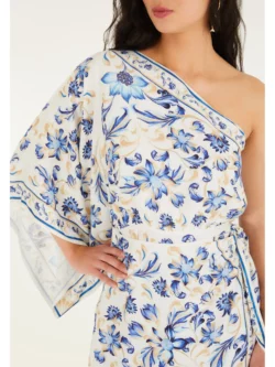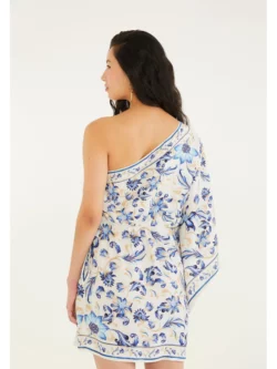 vestido ombro só estampado azulejaria. com design que destaca o ombro e estampa exclusiva, o modelo encanta com seu corte fluído e acabamento impecável. a composição leve é ideal para eventos casuais ou passeios ao ar livre, transmitindo um estilo único e autêntico.