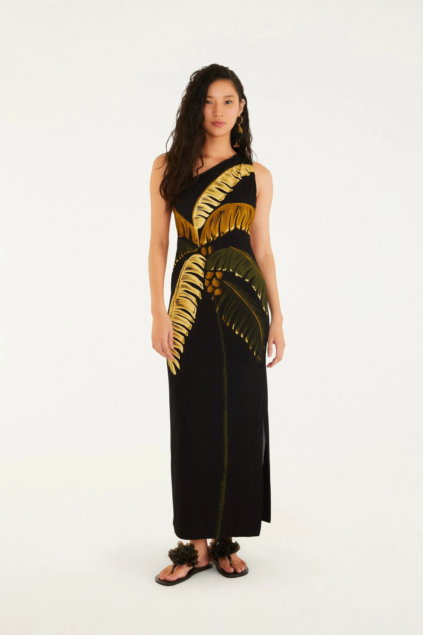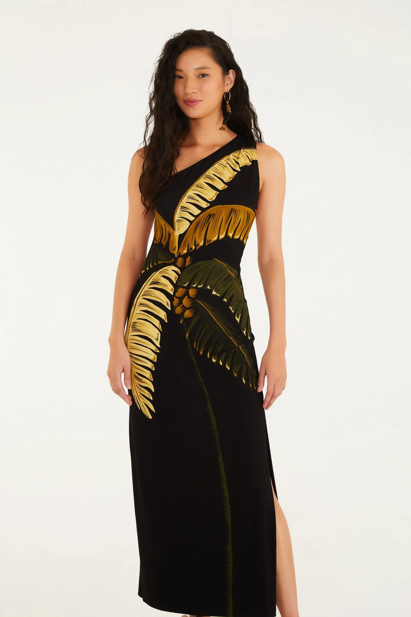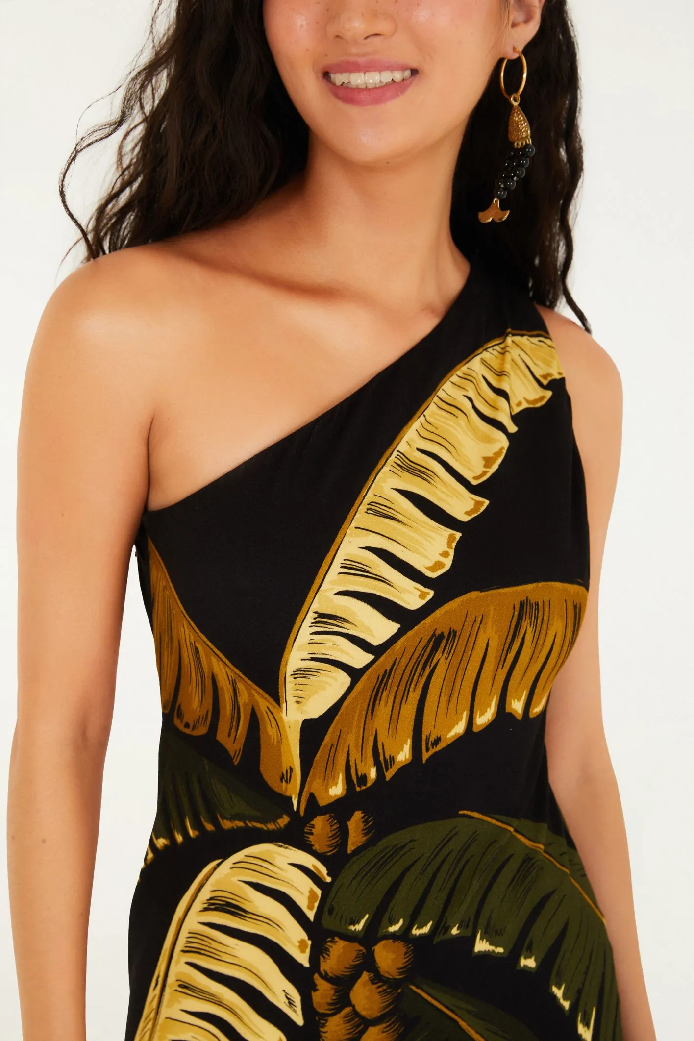 vestido ombro só estampado itacaré coqueiro. Com um design assimétrico e moderno, este vestido apresenta recorte único que evidencia o ombro e valoriza a liberdade de movimento. a combinação de estampas exclusivas transforma a peça em um ponto de destaque.