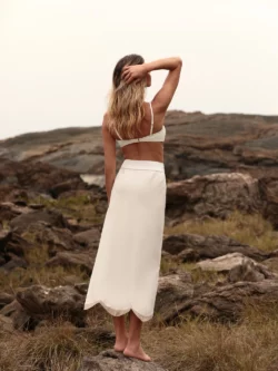 Saia longa com acabadamento em formato de ondas