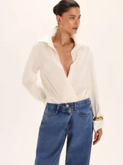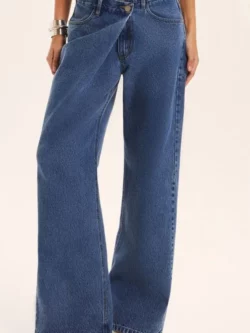A Calça Tamires é um jeans balloon com cós duplo assimétrico em estilo envelope, valorizando a cintura e criando um shape moderno e confortável. A lavagem escura adiciona sofisticação ao visual, tornando a peça versátil para diferentes combinações.