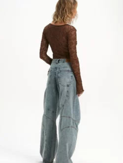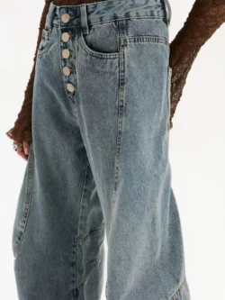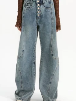 A Calça Zoe traz o jeans em uma proposta fashion e cheia de personalidade. Confeccionada em denim 100% algodão, ela possui recortes especiais que valorizam o design e adicionam informação de moda à peça. O cós com fechamento por botões reforça o visual contemporâneo, enquanto a modelagem barril, com pernas mais amplas, cria um caimento moderno e confortável