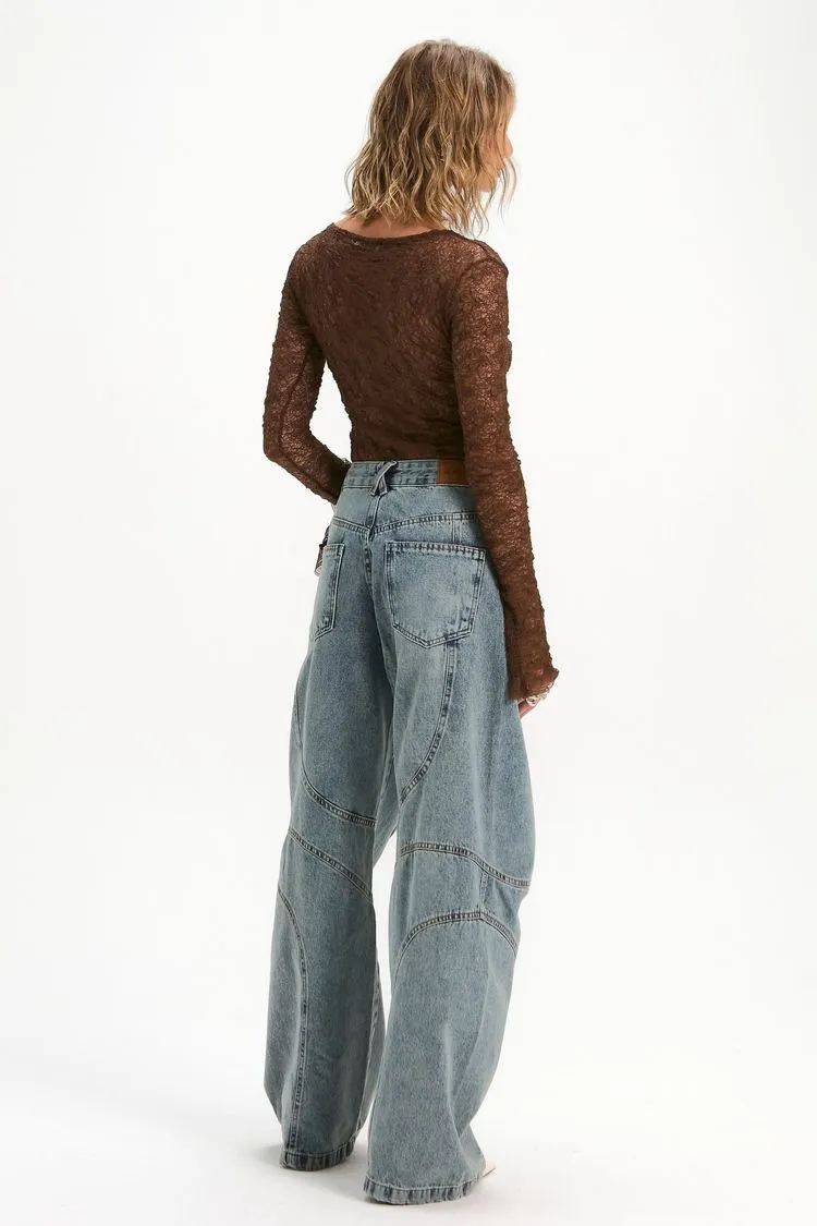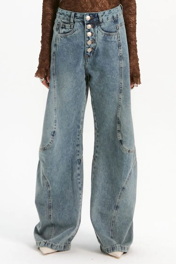 A Calça Zoe traz o jeans em uma proposta fashion e cheia de personalidade. Confeccionada em denim 100% algodão, ela possui recortes especiais que valorizam o design e adicionam informação de moda à peça. O cós com fechamento por botões reforça o visual contemporâneo, enquanto a modelagem barril, com pernas mais amplas, cria um caimento moderno e confortável