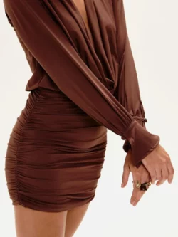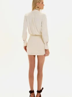 O Vestido Cris combina elegância e atitude em uma só peça. Curto, possui saia dupla franzida que garante movimento e leveza, enquanto o corpo estilo camisaria com gola traz sofisticação. As mangas com punho e o decote profundo degagê adicionam um toque moderno e feminino, tornando-o perfeito para compor looks estilosos e marcantes.