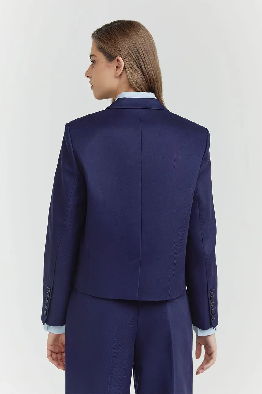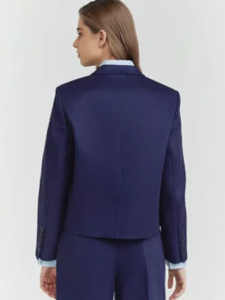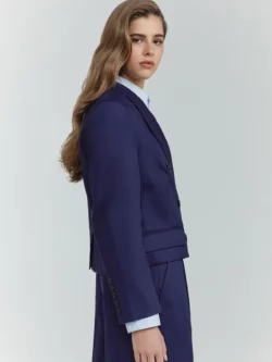 Blazer confeccionado em alfaiataria, com modelagem regular e comprimento regular. Sem estampa, possui manga longa, decote V e fechamento com botões de resina. Conta com barra invisível, bolsos com lapela, ombreiras e fenda, garantindo estrutura e sofisticação ao visual.