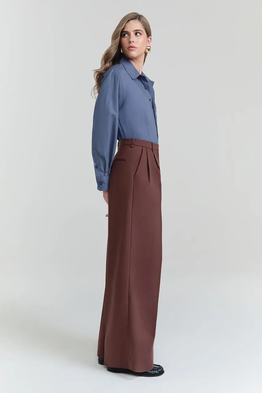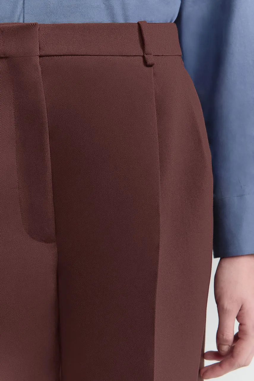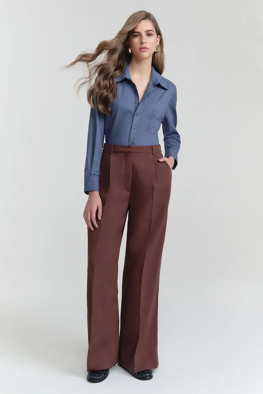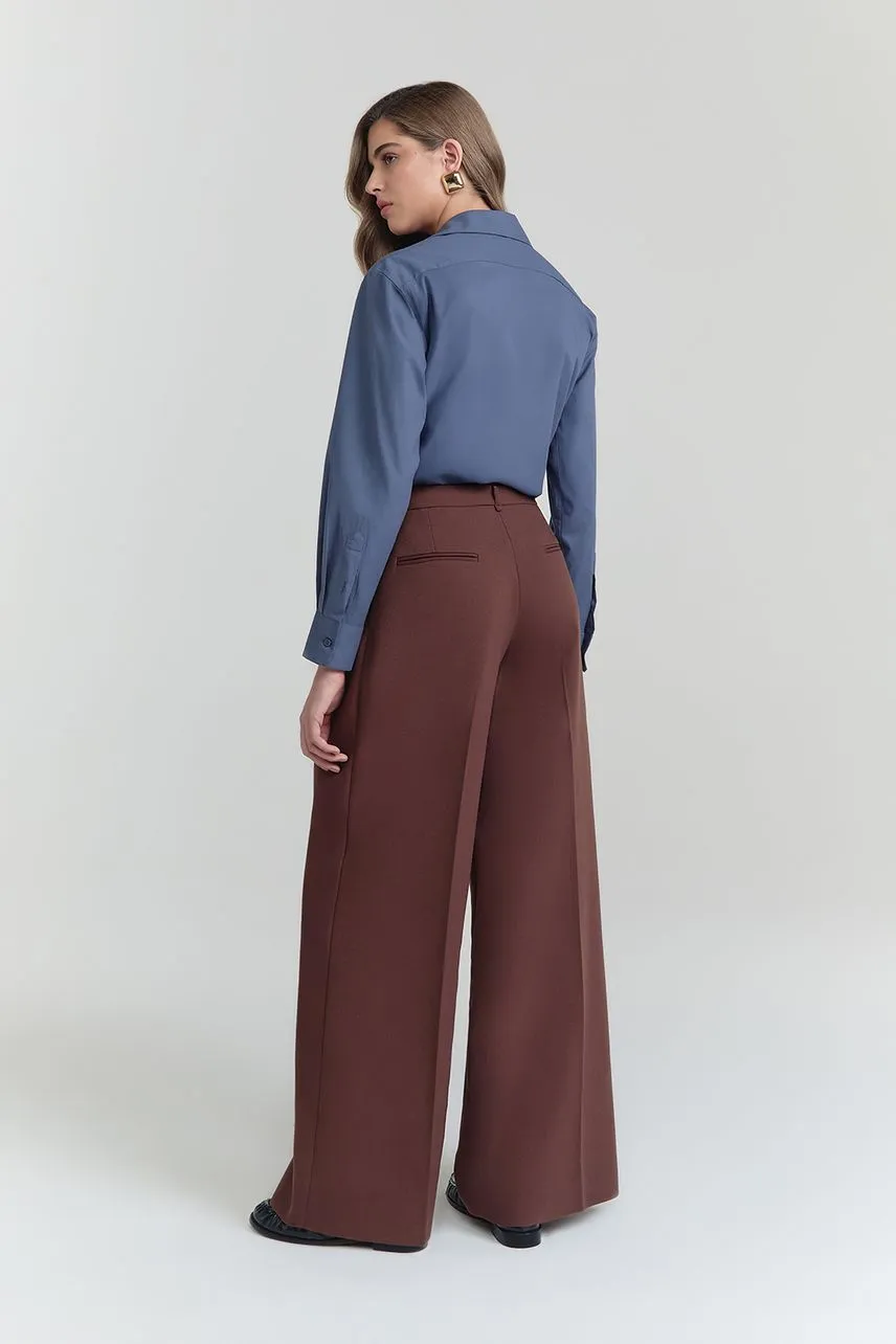 Calça de alfaiataria com modelagem reta e comprimento longo. Cintura média, barra reta e cós de alfaiataria. Bolsos faca e fechamento frontal com botão interno, gancho e zíper. Essencial e versátil para looks do trabalho ao casual.