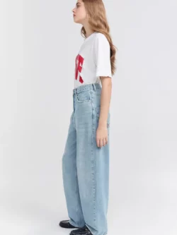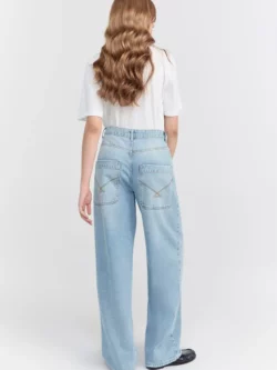 Confeccionada em jeans, a calça apresenta modelagem reta e comprimento longo. Com cintura média e lavagem especial, combina estilo e conforto. Possui cós reto, fechamento frontal com botão de metal e zíper, além de bolsos frontais e traseiros que completam o visual clássico e moderno da peça.