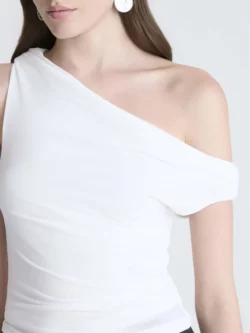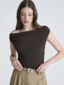 Regata confeccionada em malha, com modelagem slim e comprimento regular, oferecendo caimento ajustado e confortável. Sem estampa, a peça se destaca pela gola assimétrica, que adiciona um toque contemporâneo ao visual. Com manga curta e barra reta, é uma opção versátil para composições modernas, ideal para usar sozinha ou como base para sobreposições.