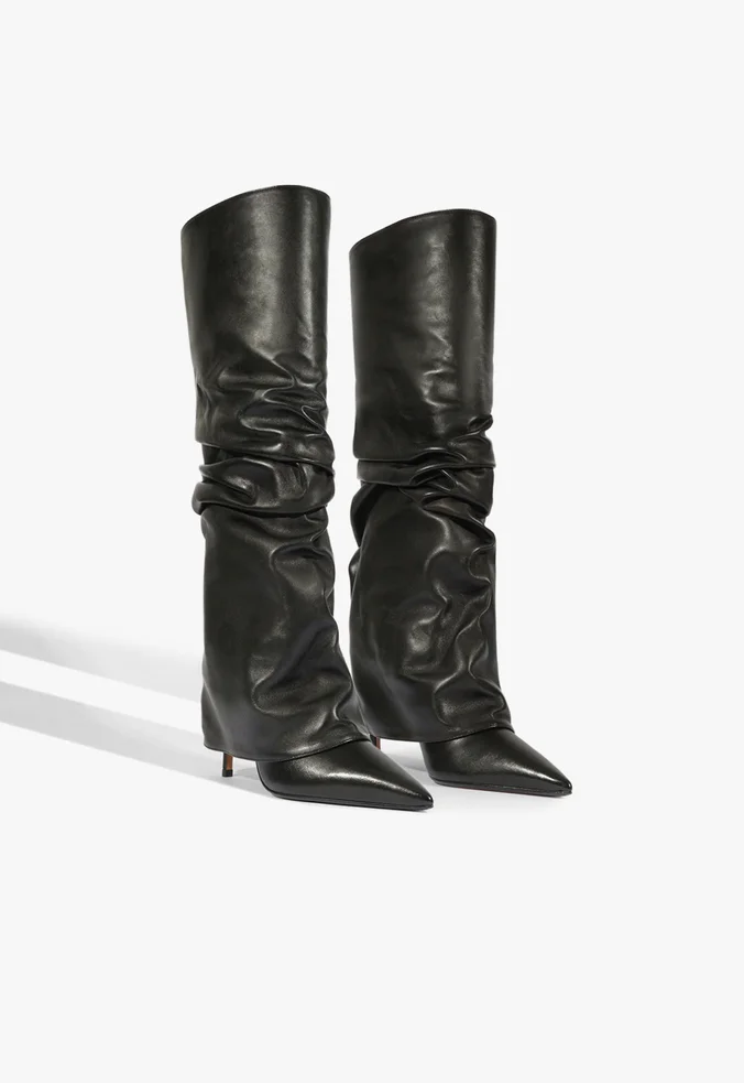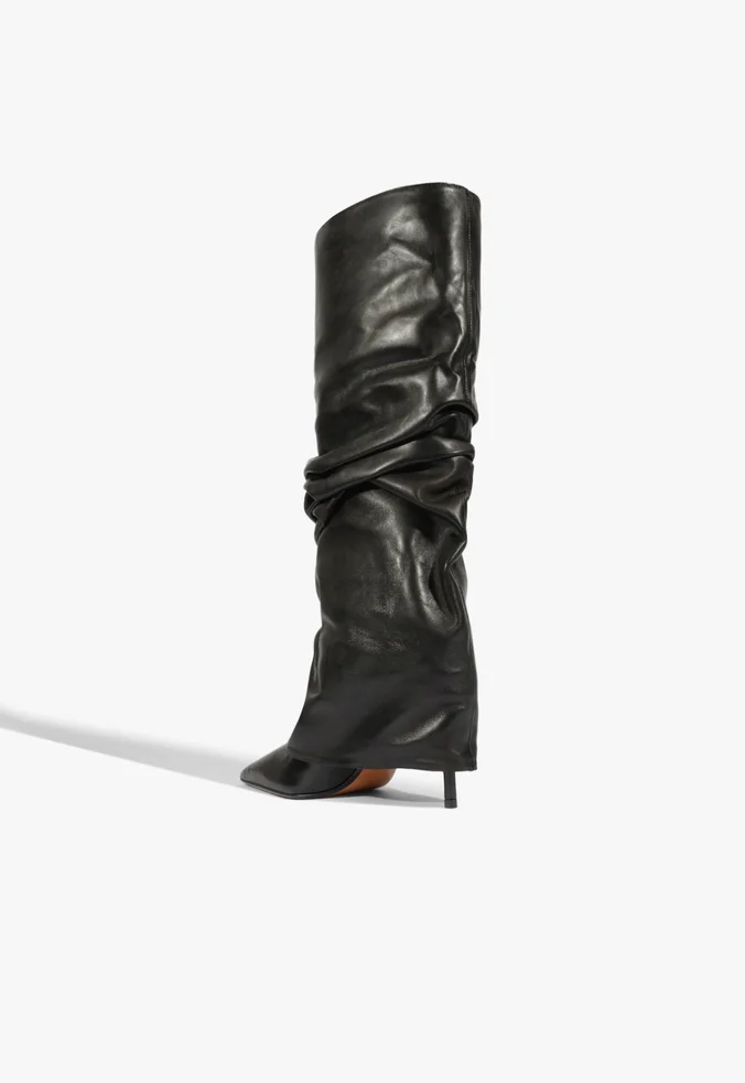 A Bota Mikki Up Cloak é a definição de uma peça statement que une moda e sofisticação em um único design. Com seu cano longo e o efeito drapeado cloak, ela é a escolha perfeita para quem deseja uma bota que não apenas acompanhe o look, mas seja a estrela principal da produção.