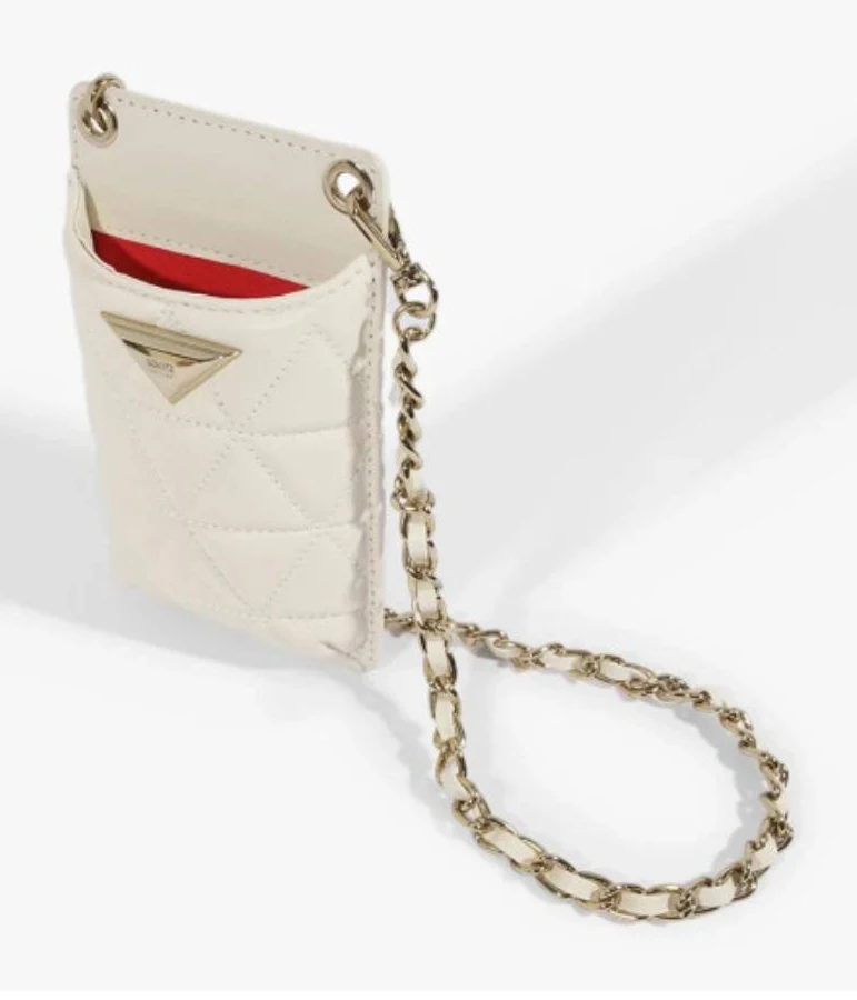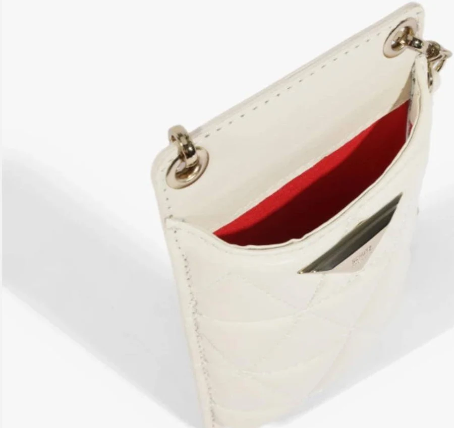 Elegante com sua construção matelassê e aplicação do luxuoso Triangle da nossa icônica família 944, esta bolsa porta-celular traz ainda a charmosa alça de corrente e o glamour do acabamento metalizado. O porta-cartões na parte traseira deixa este acessório ainda mais prático. Aposte! Comprimento da alça: 55cm