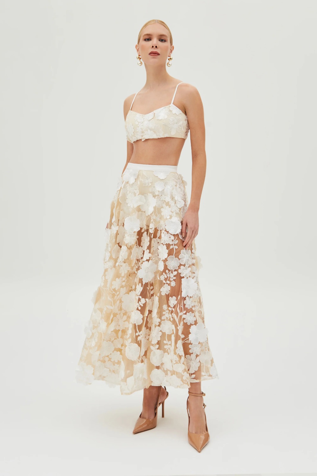 Zen SAIA MIDI EM TULE BORDADO COM COS MEDIO OFF WHITE